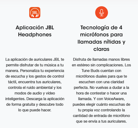 Gracias a la tecnología Bluetooth de última generación, los auriculares JBL Tune Buds emiten audio con un bajo consumo de energía y alta calidad. Además, el BT 5.3 permite transmitir audio sincronizado de forma independiente a cada auricular, para que puedas usar uno o ambos auriculares. O puedes compartir tu contenido de vídeo o música con un amigo que lleve auriculares, ya que el BT 5.3 te permite transmitir a la perfección audio a varios oyentes. (*) Disponible mediante actualización OTA más adelante