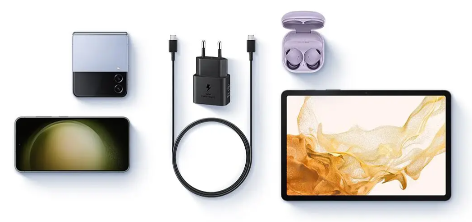 Mételo dentro de tu bolso de dispositivos. Hasta 25 W de carga para la estación de trabajo y tus dispositivos compatibles con cables Type-C, sin hablar de tu familia Galaxy.