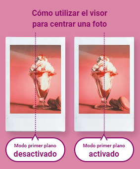 Gira el objetivo para encenderla y vuélvelo a girar para ponerla en el modo primer plano. Este modo es perfecto para distancias de 30 a 50 cm.
