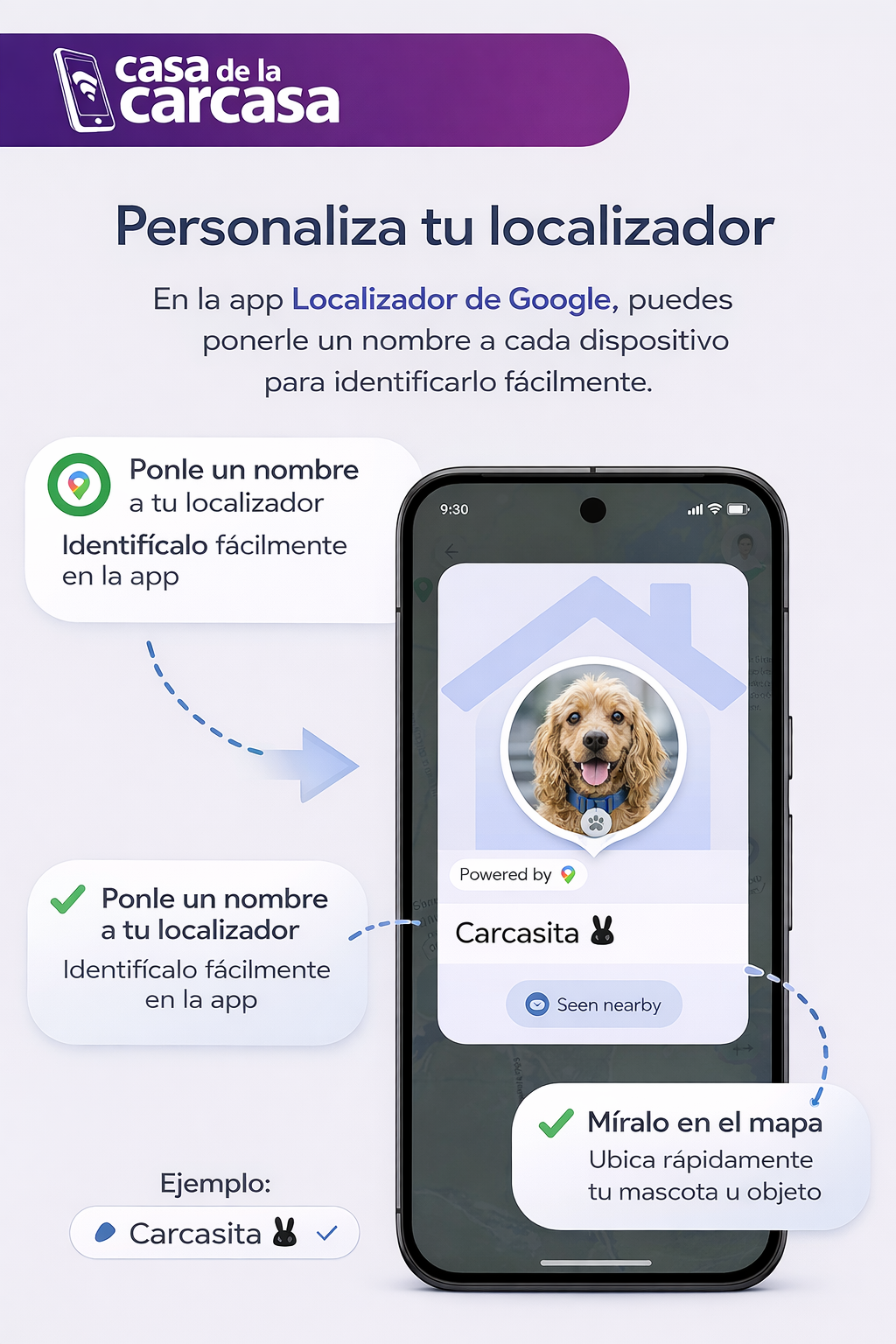 Por ejemplo, si uno lo usas para tu mascota, puedes nombrarlo “Carcasita”, y así aparecerá con ese nombre en el mapa cuando revises su ubicación.