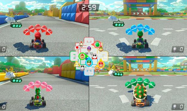 Los jugadores pueden elegir una nueva función de dirección inteligente que hace que conduzcan y permanezcan en la pista de manera fácil para los jugadores novatos y niños, incluso en 200cc Se han añadido tres vehículos nuevos, dos incluso inspirados por Splatoon. Los artículos que vuelven incluyen Boo, el ítem fantasma que roba, y la pluma que te hace dar un salto de altura en modo de batalla. Juega en cualquier momento y en cualquier lugar con el modo sobremesa. ¡Lleva dos artículos al mismo tiempo!