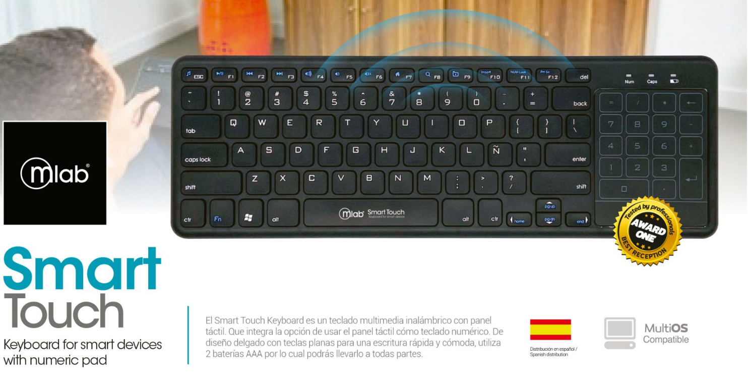 •El Smart Touch Keyboard es un teclado multimedia inalámbrico con panel táctil. Que integra la opción de usar el panel táctil como teclado numérico.